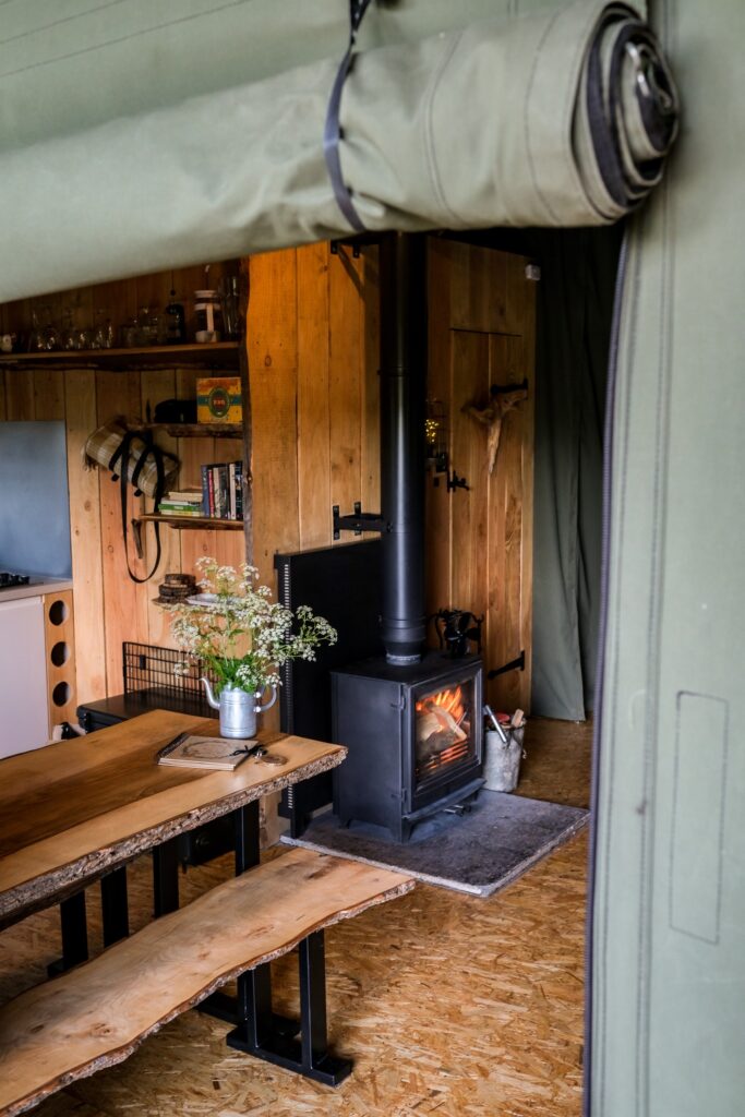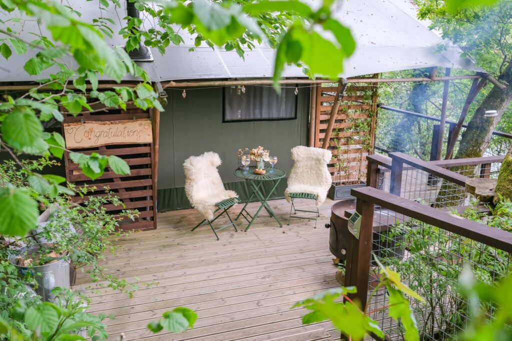 Outside Seating: Each of the By The Wye safari tents feature its own spacious elevated deck with private outside seating. These decks offer panoramic views of the River Wye and the surrounding mountains, providing a tranquil spot to relax after a long day in the saddle.