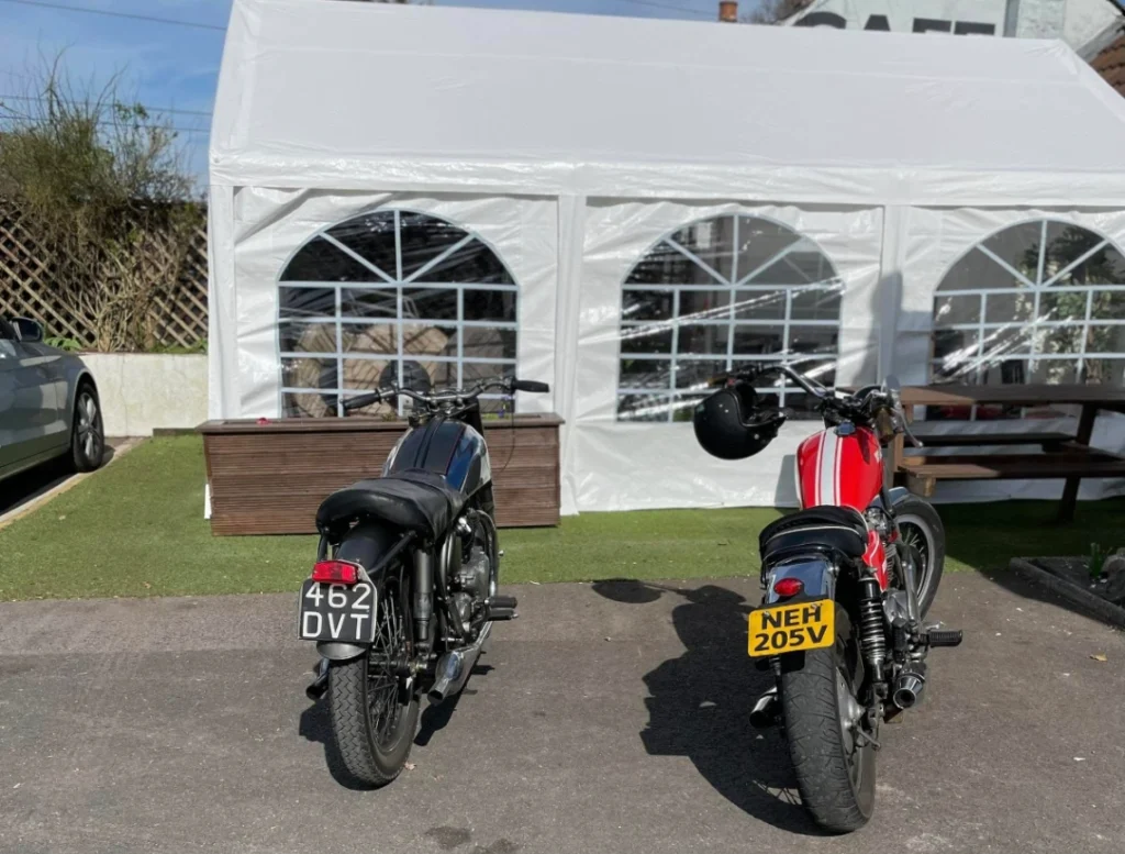 Furthermore, the physical space is highly accommodating. With both indoor seating and an outdoor marquee available during the warmer months, there is plenty of room for riders to shed their heavy leathers and helmets without feeling like they are in the way. This “de-kitting” space is often overlooked by standard cafes, but it is a vital component of being truly bike-friendly. The inclusion of a dog-friendly policy and a vibrant, busy atmosphere means that bikers—who often travel with a mix of friends and family—feel right at home.