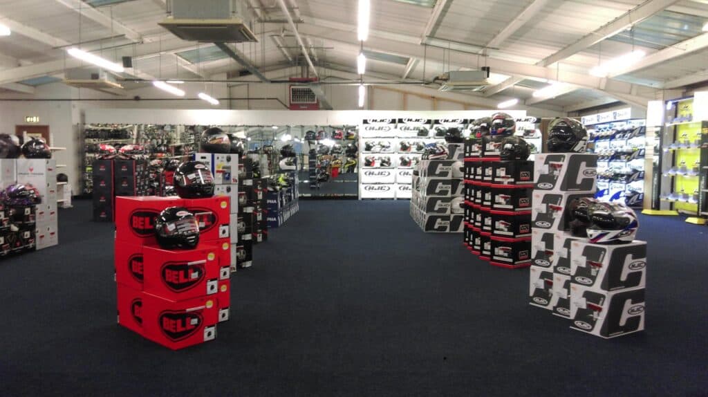 We started out as one man selling at motorcycle shows, grew into a warehouse in Northwich and we now have stores nationwide from Aberdeen down to Plymouth, our own website and shops on Ebay and Amazon all selling a huge range of motorcycle helmets, clothing, boots, gloves & accessories.
