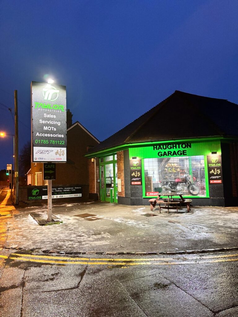 Located in the village of Haughton, just outside Stafford, Taylor Motorcycles (also known as Taylor Brothers) is a family-run dealership and service centre that’s been part of the local biking scene for years. Operating out of Haughton Garage, West Midlands, it’s a functional, “old-school” style shop that focuses on sales, MOTs, and repairs. It isn’t a high-end boutique; it’s a working garage with a practical atmosphere that feels familiar to anyone who’s spent time around bikes.
