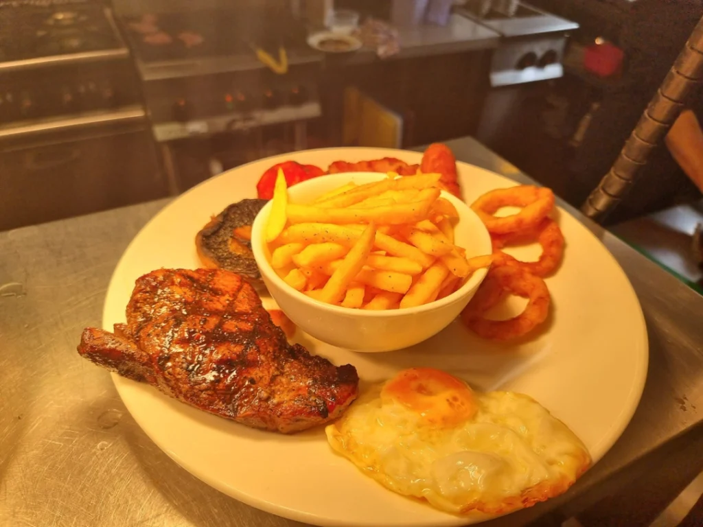A “Proper” Biker Menu: The food here is built for substantial appetites. It is particularly well-regarded for its massive Full English breakfasts, which many riders consider the best in the area for a pre-ride fuel-up. The rest of the menu leans into high-quality comfort food, including stacked burgers, steaks, and a popular selection of local real ales.